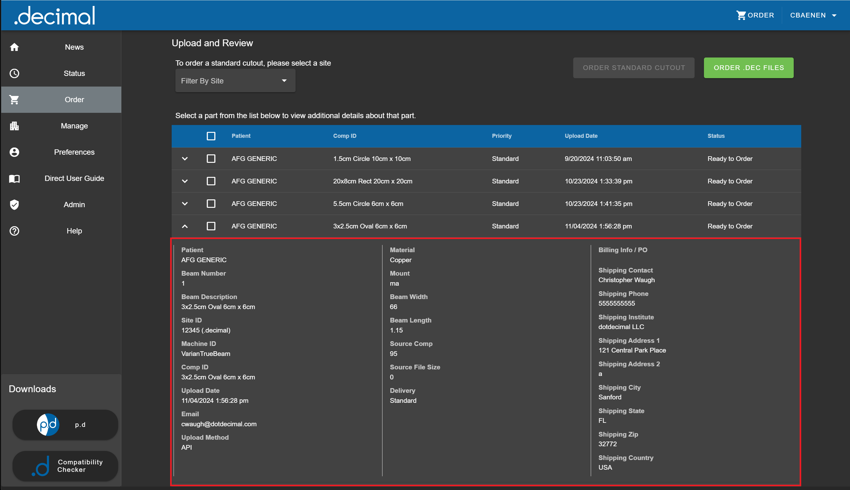 Unknown Machine Name: The treatment machine selected when generating this order does not exist in the machine setups .decimal maintains for your site. This is normally due to a incomplete new customer setup or a change within your facility in machine name. .decimal keeps your machine setups synchronized with your physical site to ensure there are no configuration issues that would lead to a delay of your device being used for treatment.
