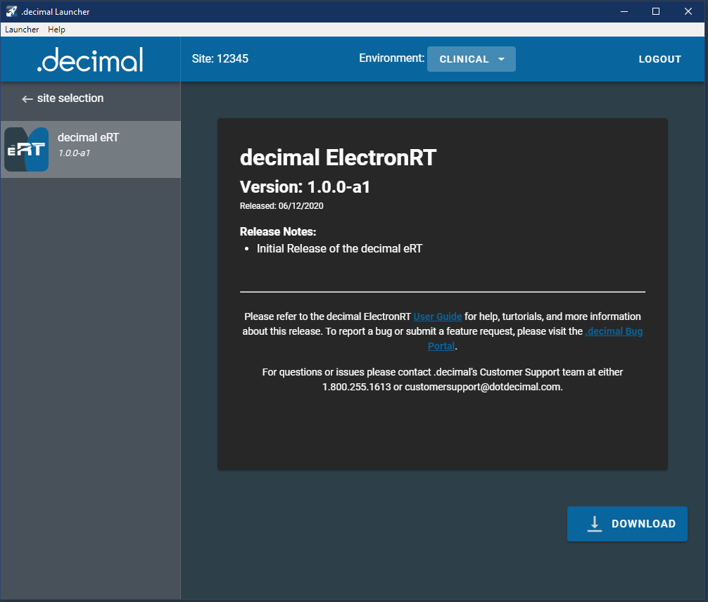 The decimal Launcher can be downloaded from https://direct.dotdecimal.com. Note: You will have to login using your decimal Direct credentials to be able to download the software.