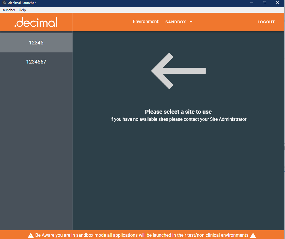 The decimal Launcher provides a “Sandbox” area to install new versions of applications in order to test them before Clinical release. This area is separate from all of your Clinical applications so they will not affect any patient data.