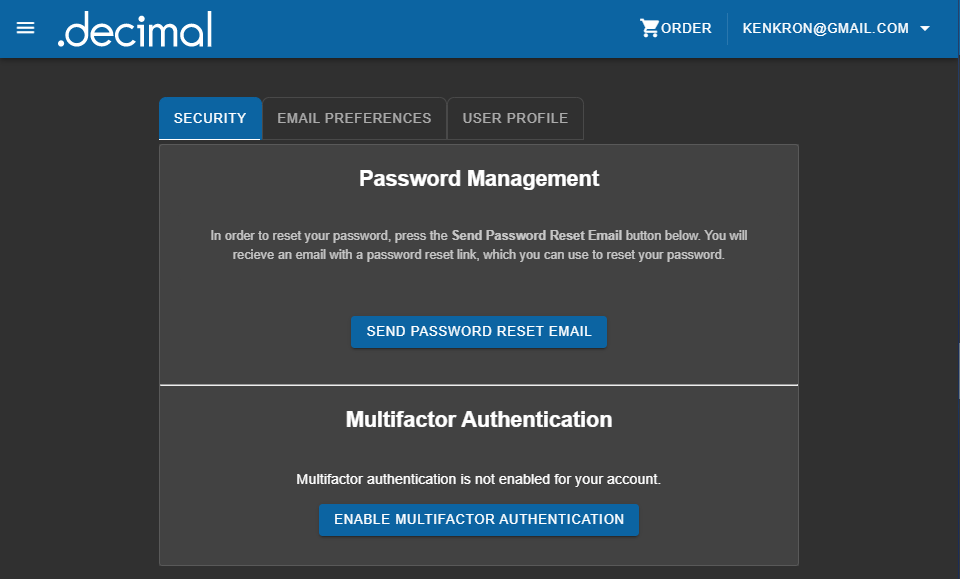 - Email: User's contact email. NOTE: This is the contact email for use by .decimal Customer Support. This does NOT have to do with shipping/order notification emails as addressed above.