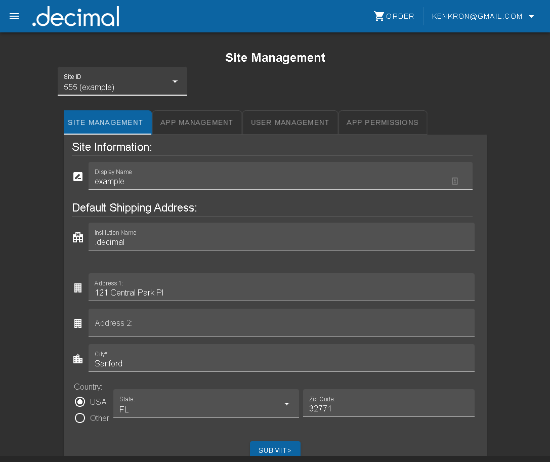 NOTE: Site managers should only invite and add users to their .decimal site for employees of their treatment facility that intended to use .decimal software. This limits the number of user that potentially have access to order history data and .decimal applications that may contain patient data. Abusing the user invitation system is a violation of the .decimal Terms of Service and could result in account suspension.