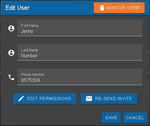 Newly invited users will be sent an invitation email. If the email needs to be resent for any reason, the invitation can be reset from the edit user dialog.