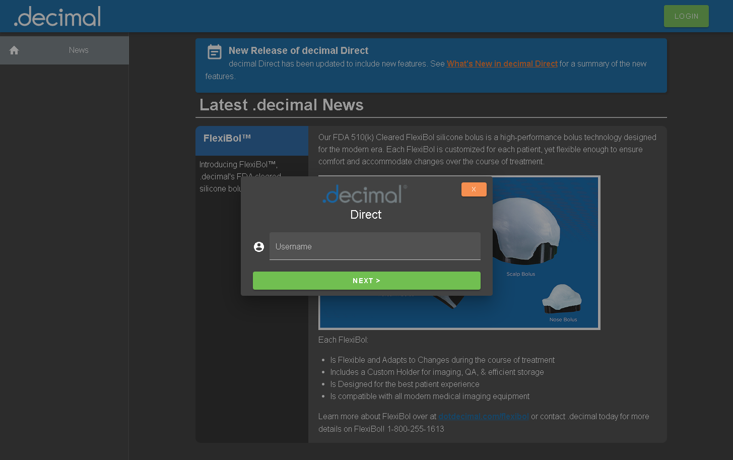 - Login to decimal Direct [Hyper link to Login section].