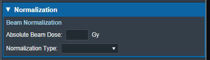 In this block the user can specify how the electron beam will be normalized to scale the computed relative dose (%) to absolute (Gy) dose. The eRT application provides the following normalization options: