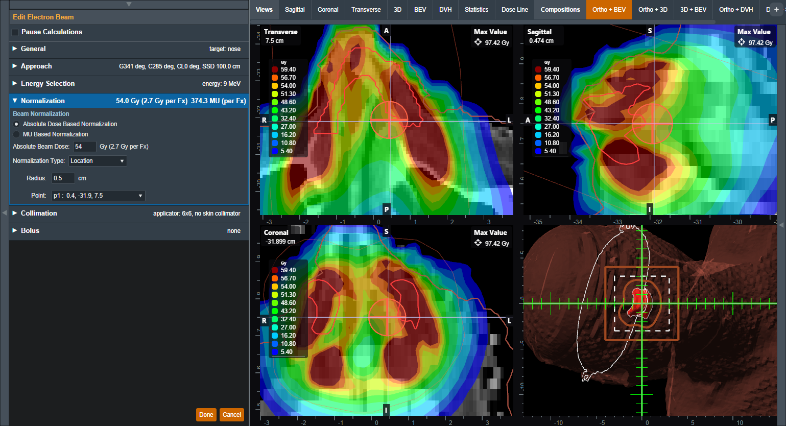 When creating a new Electron Beam you will be unable to see your beam approach or dose until a beam normalization is fully specified.