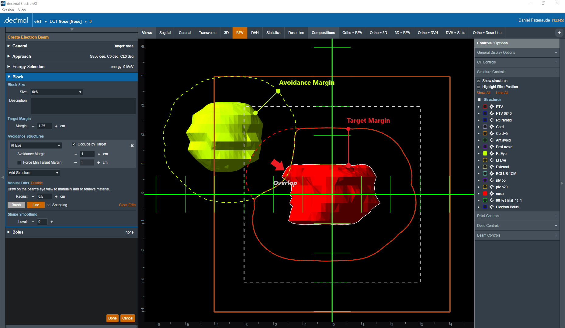- Avoidance Margin: required, sets the margin of avoidance around the selected structure's projection to the isocenter plane.