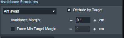 - Force min target margin: disabled by default, when enabled it will force a minimum margin around the target taking priority over the settings of the avoidance structure.