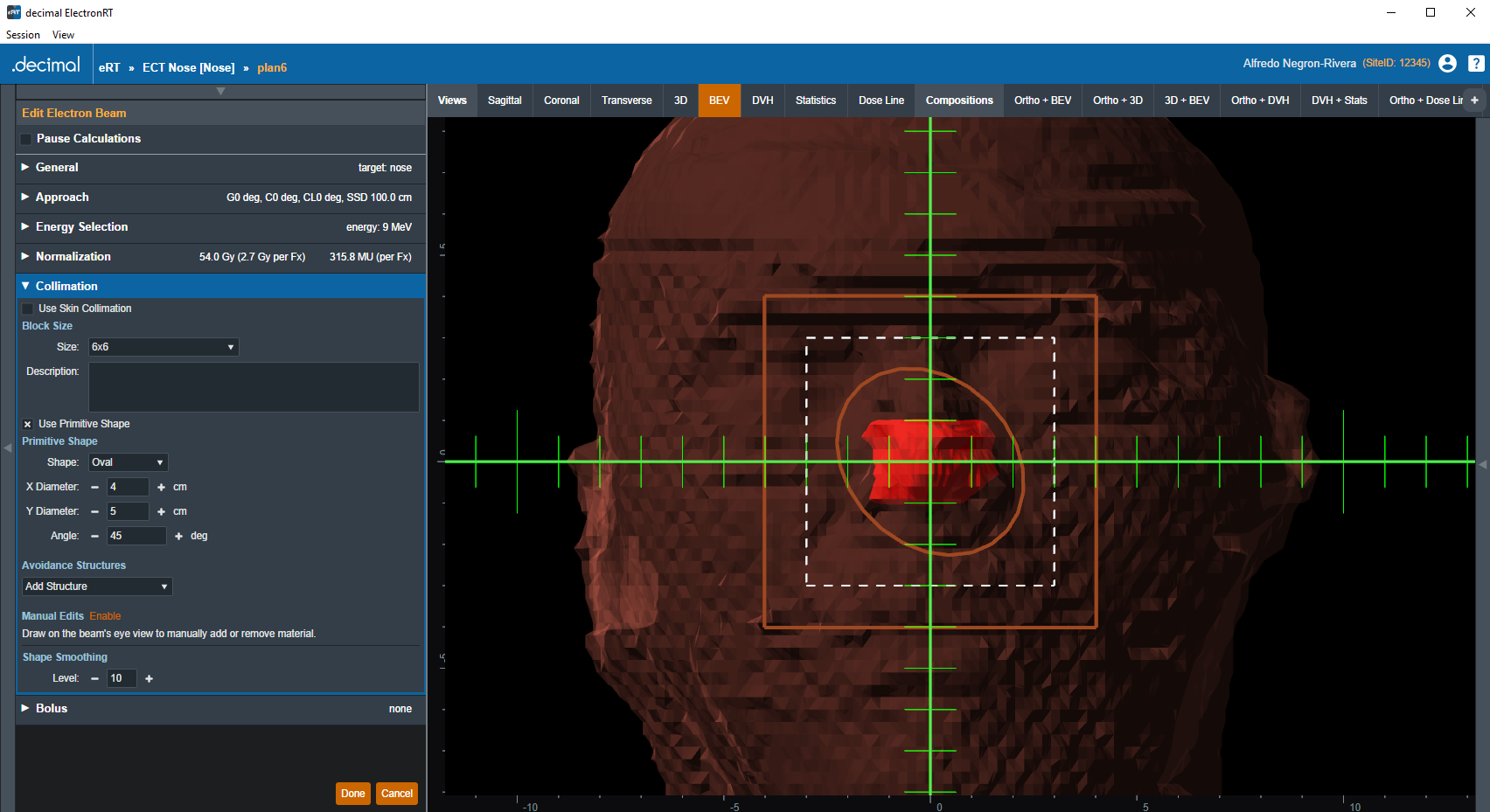 Instead of using the geometric target, the user may use a primitive shape as the base block opening instead. The user can choose the shape (square, circle, rectangle, or oval) and the dimensions at isocenter.